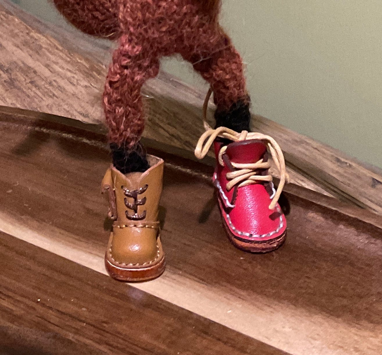 We then had to decide on shoes, Lannar had already chosen a blue pair. Peregrine is a more down to earth character though and went for the brown. His reasoning was they were more appropriate for tramping through the countryside to gigs.