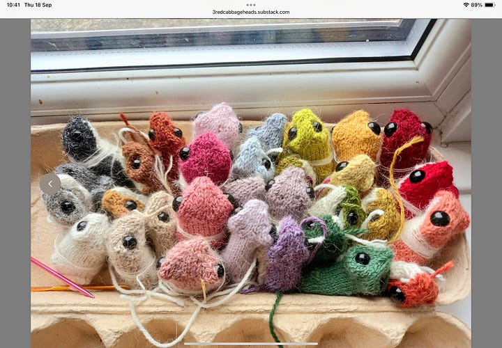 One particular little one pushed itself to the front and begged to be begun. They had born the dwindlance of the Pool with stoicism watching other being knitted first. Until eventually I picked them. See if you can pick him out in the groups photos.