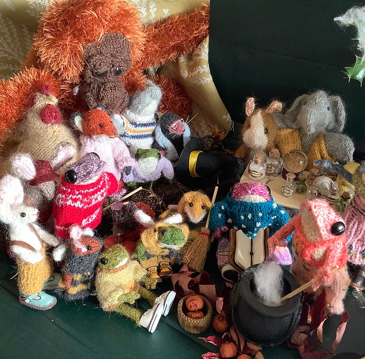 Ook is my favourite, though the rabbits are very sweet also. Bonfire Night could be a theme, though whether the frogs could be trusted with matches, who knows?