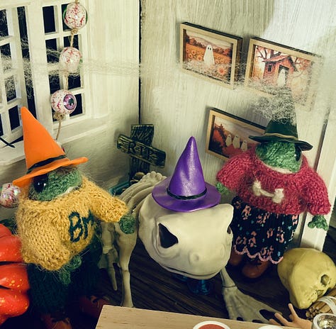 Houses, doorways, etc were a feature this month. Hill Top Beatrix Potter’s home. A red doorwayed house. A coffee shop we actively chose to go in and have a coffee purely because of the flags outside. Halloween display in Haworth. Beatrix Potter’s dollhouse. A little abode I picked up along the way (luckily no stamp duty due on this one).
