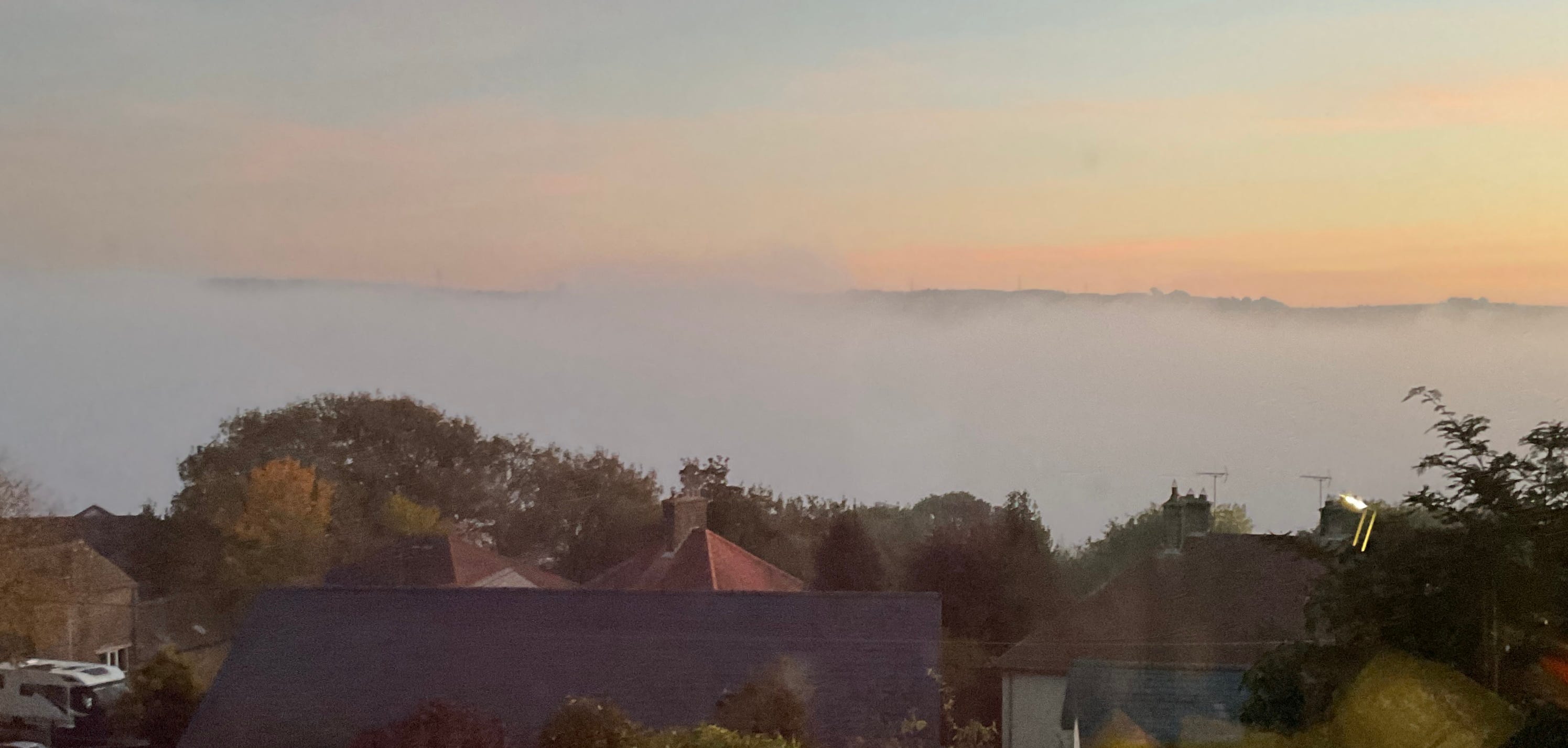 Mist over the valley at sunset.