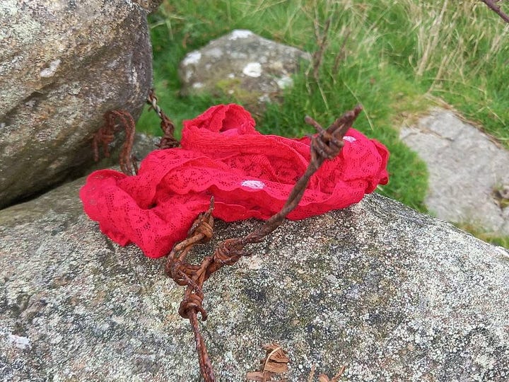 Whilst photographing the views in Cumbria we came across with discarded ‘memento’ of a hopefully good time had. First of all I thought it was a paper napkin and I was going to clean it away. However, a pair of lacy red knickers around rusty barbed wire wasn’t something I wished to pick up. 😳