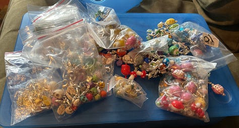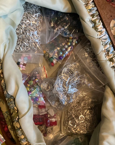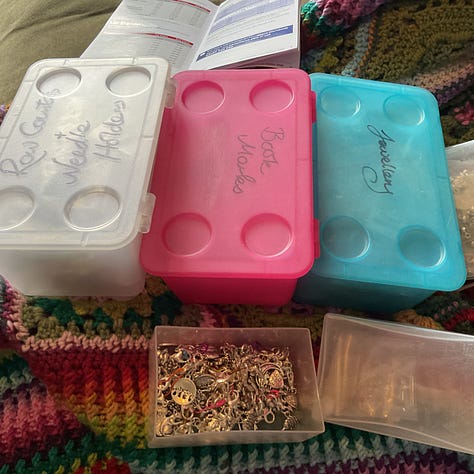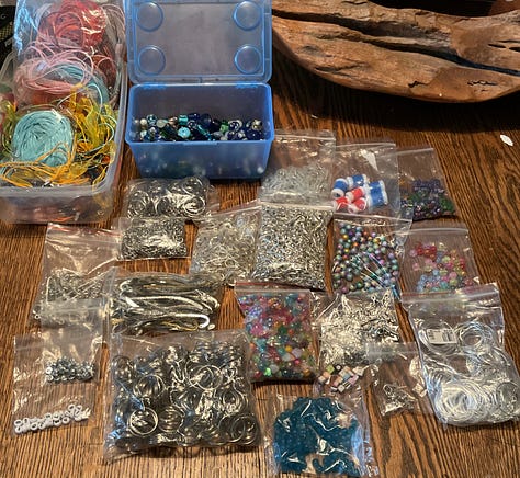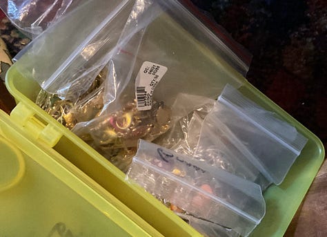 I decided for some lost on me reason to start sorting out my craft cupboard and taking apart all of the stitch markers, etc that Iโd made over the years for selling on Etsy. I donโt sell on there anymore and I really need to consolidate what I do have. Whatever Iโve deconstructed is available for free to anyone who wants it (just pay postage), otherwise Iโll send it to the charity shops at the end of October.
