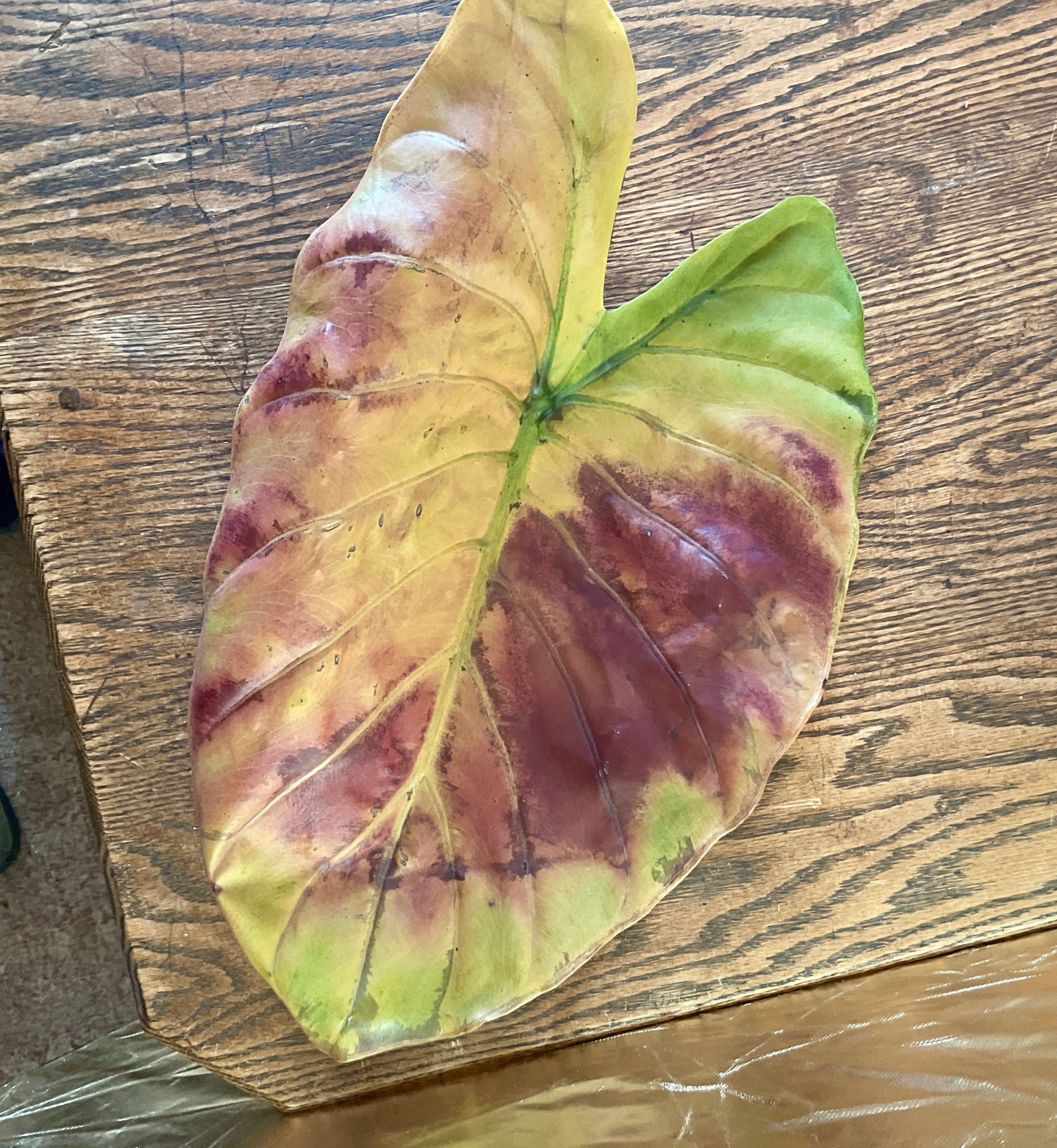 I cut this dying leaf off one of my many house plants. The colours are lovely.